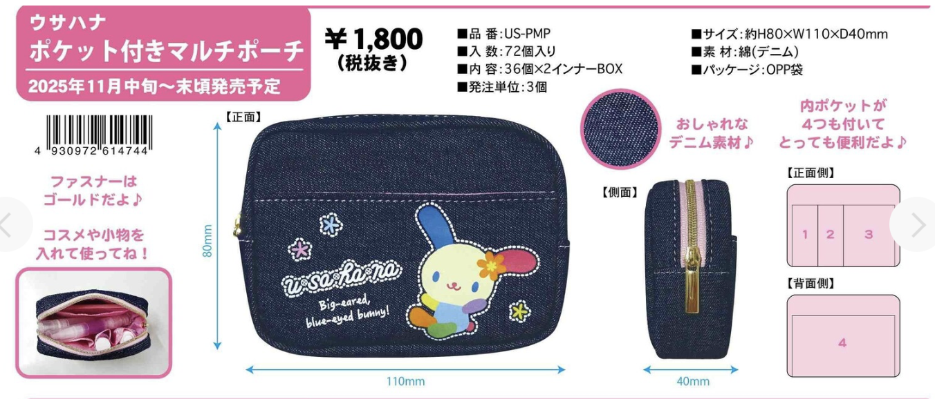 《預售中》Sanrio Usahana 牛仔化妝袋